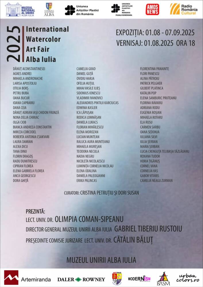 Vernisajul expoziției din cadrul primei ediții a International Watercolor Art Fair 2025 va avea loc vineri, 1 august, ora 18:00 la Muzeul Național al Unirii Alba Iulia.