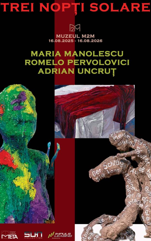 Slon, Prahova, România – Muzeul M2M lansează noua perioadă expozițională cu vernisajul „Trei nopți solare”, programat pentru sâmbătă, 16 august 2025, la ora 14:00, în Slon. Reunind operele artiștilor Maria Manolescu, Adrian Uncruț și Romelo Pervolovici, expoziția va rămâne deschisă publicului timp de un an.