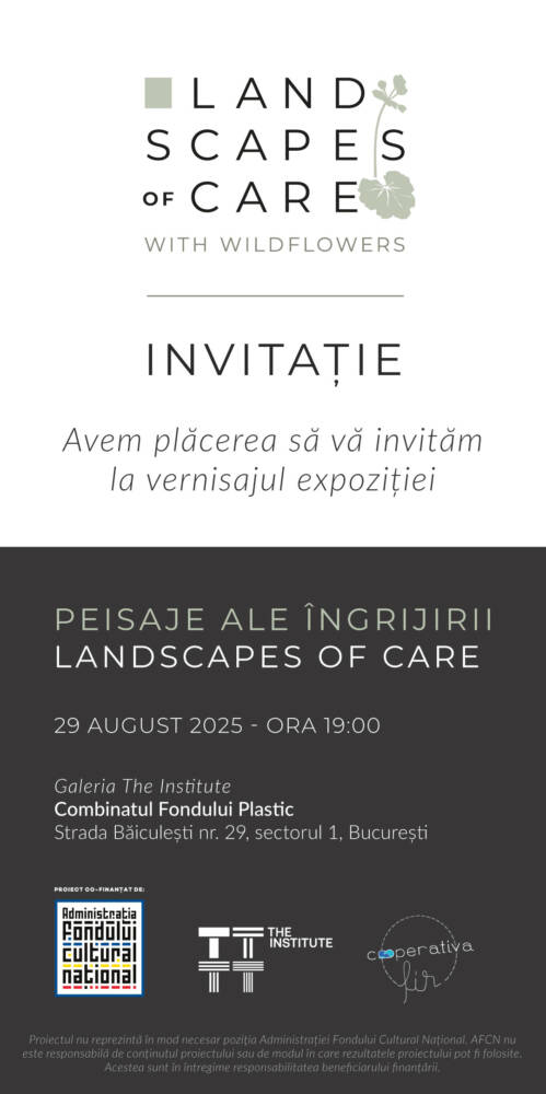 În 29 august, la spațiul The Institute de la Combinatul Fondului Plastic din București, se deschide expoziția „Peisaje ale îngrijirii / Landscapes of Care”, o incursiune în spațiile intime și comune ale Bucureștiului – balcoanele și curțile dintre blocuri – privite ca locuri ale memoriei, rezilienței și comunității.