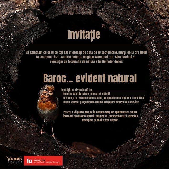 Institutul Liszt – Centrul Cultural Maghiar din București invită iubitorii artei și ai naturii la o expoziție deosebită care se va vernisa marți, 16 septembrie 2025, ora 19:00, la sediul institutului (Gina Patrichi 8). Expoziția personală de fotografie a lui Demeter János, intitulată „Baroc… evident natural”, combină într-un mod unic artele vizuale și muzica, oferind vizitatorilor ocazia de a trăi frumusețea naturii dintr-o nouă perspectivă.