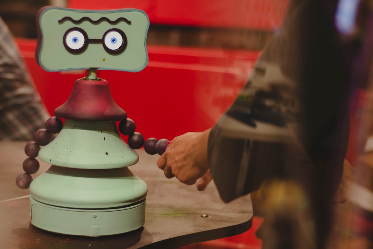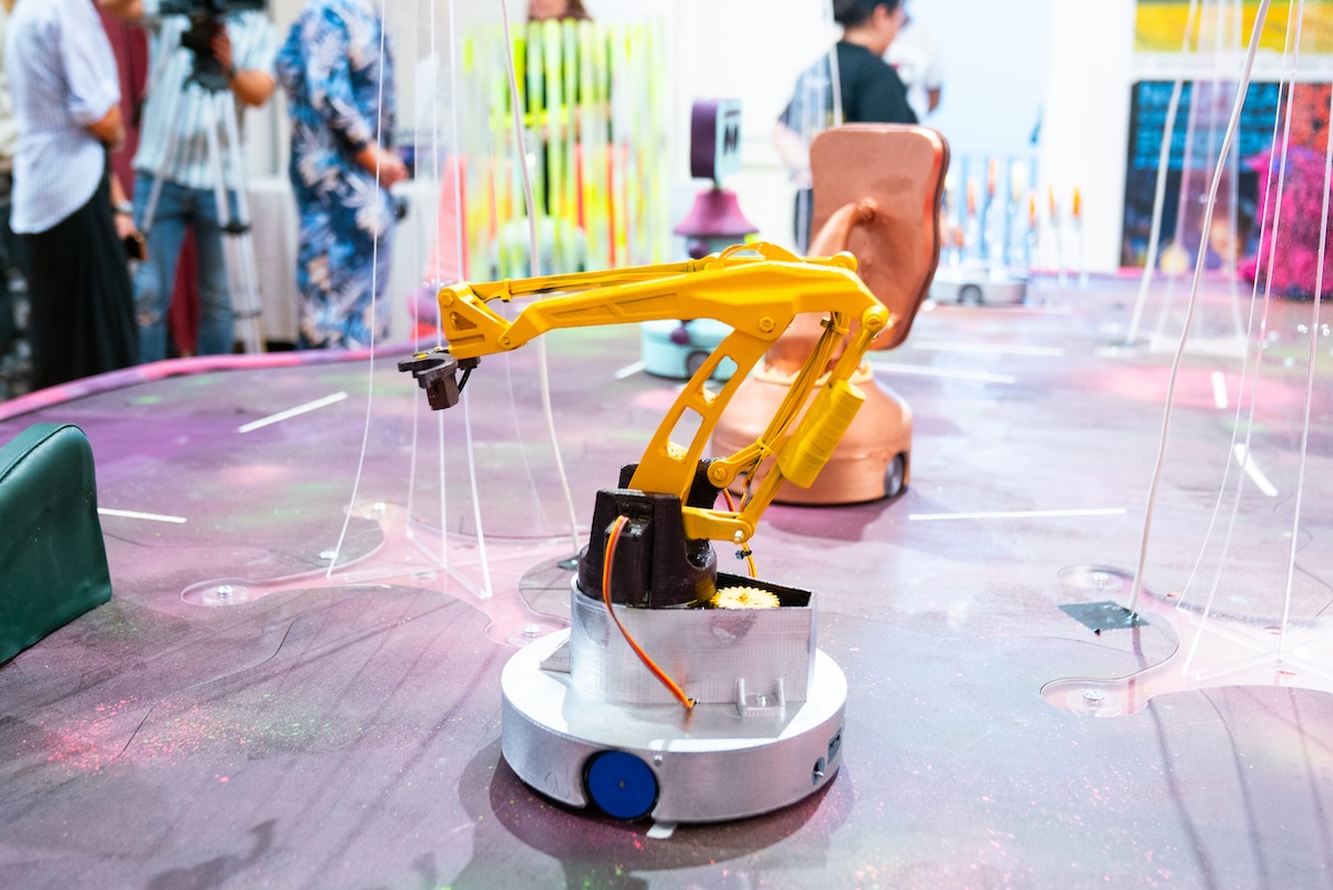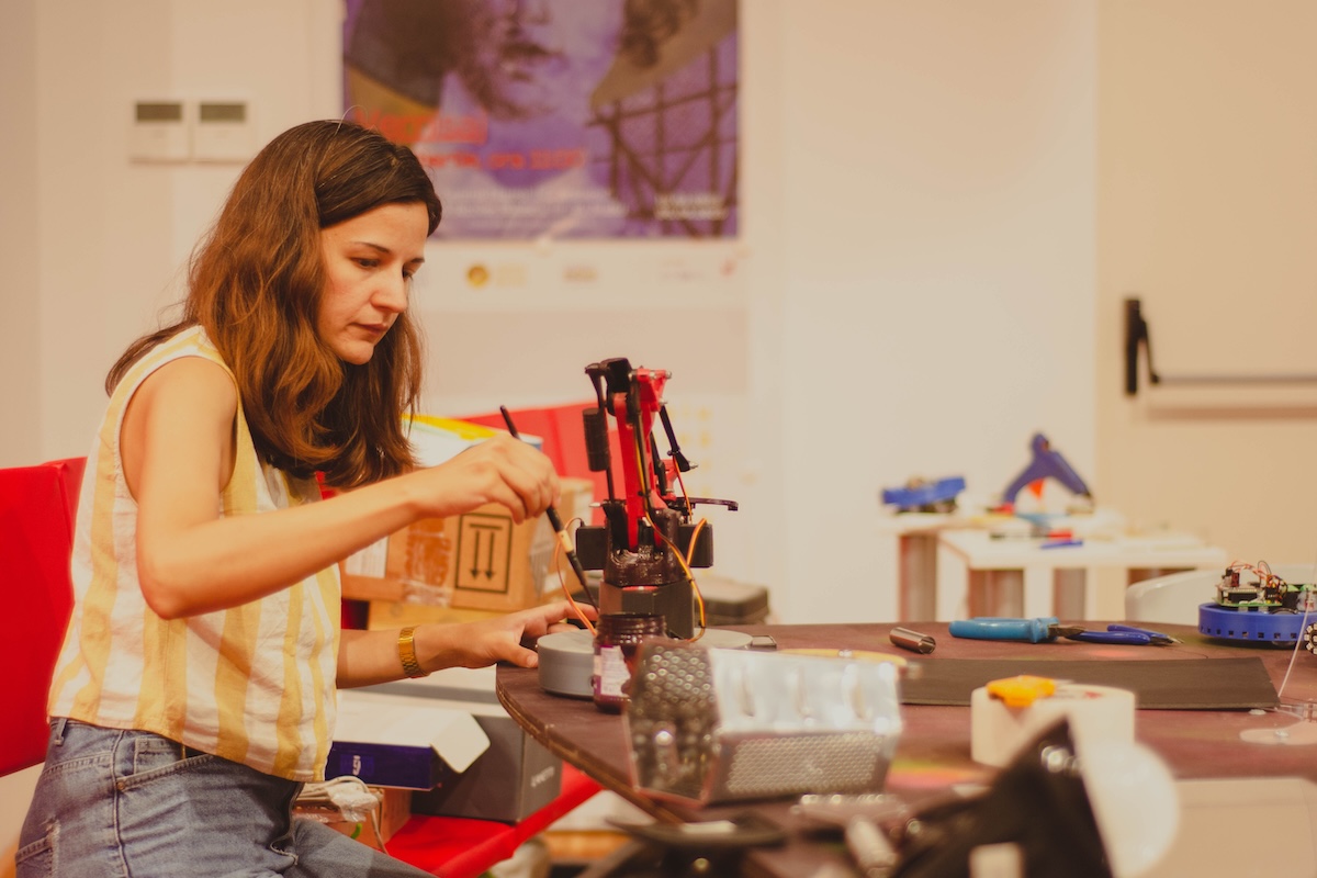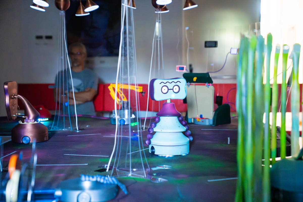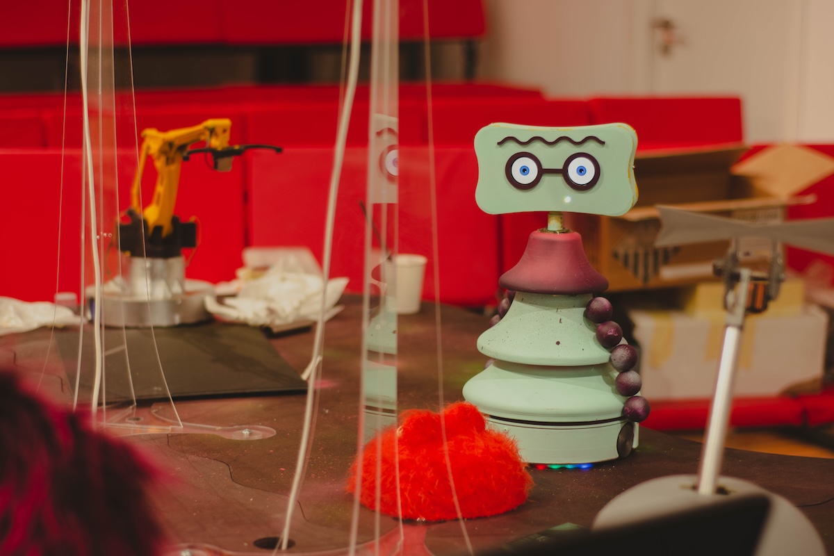 „E-Waste E-Motion: o robofabulă” este un teatru mecatronic în care toate personajele, cu o singură excepție, sunt roboți. Acțiunea are loc într-un centru de reciclare din viitorul apropiat, unde un grup de dispozitive inteligente reflectează asupra rolului lor în viața oamenilor. Povestea abordează relația dintre oameni și dispozitivele lor inteligente, precum și importanța reciclării deșeurilor de echipamente electrice și electronice („e-waste”). După spectacol, publicul este invitat să interacționeze cu instalația multimedia „Cimitirul