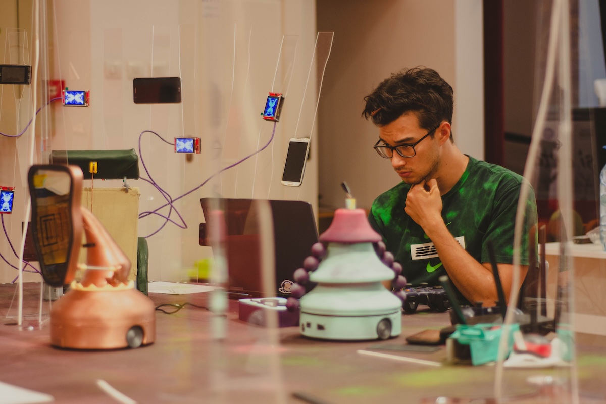 Antonie Amir Suciu, student în Computer Science and Engineering la Delft University of Technology (NL), este responsabil de realizarea interfeței de control a roboților și a luminilor din spectacol.