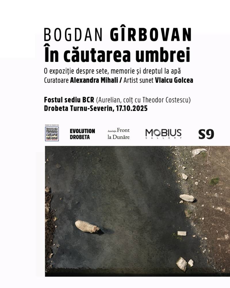În căutarea umbrei: O expoziție despre sete, memorie și dreptul la apă ne atrage atenția către o realitate tot mai presantă – deșertificarea sudului României și scăderea nivelului apelor subterane -. Proiectul artistului vizual Bogdan Gîrbovan este realizat în colaborare cu artistul de sunet Vlaicu Golcea și se alătură eforturilor Asociației Front la Dunăre de valorificare a patrimoniului istoric din Drobeta.