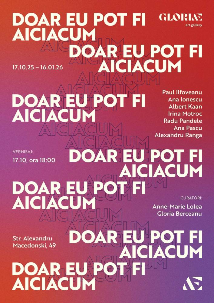 GLORIÆ Art Gallery deschide expoziția „Doar eu pot fi aiciacum”. Curatori: Anne-Marie Lolea și Gloria Berceanu.