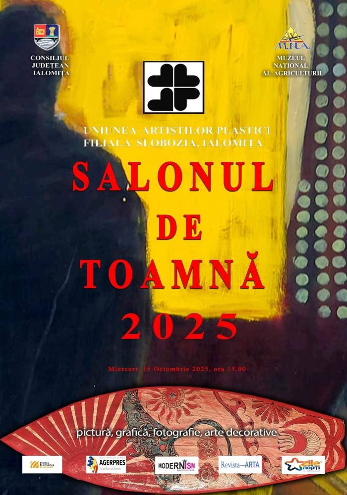 Uniunea Artiștilor Plastici din România, Filiala Slobozia – Ialomița, în parteneriat cu Muzeul Național al Agriculturii, are plăcerea de a invita publicul iubitor de artă la o nouă ediție a „Salonului de toamnă 2025”.