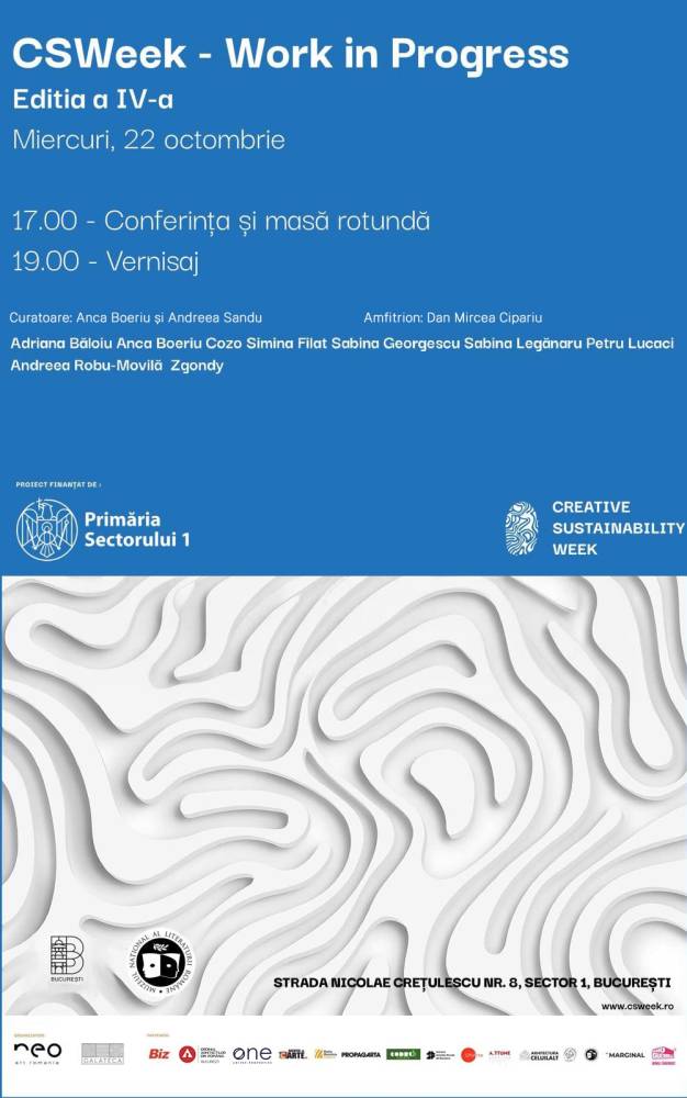 Asociația culturală NeoArt România și Galeria Galateca anunță deschiderea oficială a CSWeek – Săptămâna Sustenabilității Creative, ediția a IV-a, un proiect cultural și educațional dedicat sustenabilității prin artă și inovație, cu tema „Comunitate și Sustenabilitate”. Publicul este invitat în lumea creativității verzi și a artei contemporane în intervalul 22 octombrie – 15 noiembrie 2025.