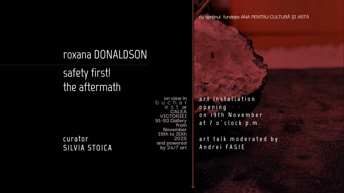 Artista vizuală Roxana Donaldson prezintă cea de-a doua reîncarnare a instalației sale modulare, “Safety First! – The Aftermath“, deschisă publicului la Galeria Calea Victoriei 91-93. Expoziția, curatoriată de Silvia Stoica si prezentata de Andrei Fășie, nu deschide un spațiu sigur, ci provoacă privitorul la o analiză critică a paradoxului securității și a anxietății în societatea contemporană.