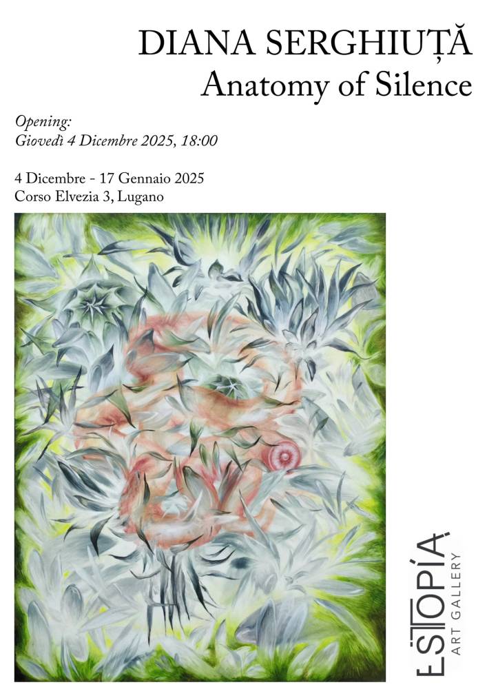 With Anatomy of Silence, Estopia presents the first solo exhibition in Lugano by Diana Serghiuță, an investigation that moves across the territories of body, memory, and perception. The exhibition introduces a pictorial language built on partial apparitions, gaps, and erasures: a visual grammar that inhabits the threshold between what surfaces and what withdraws.