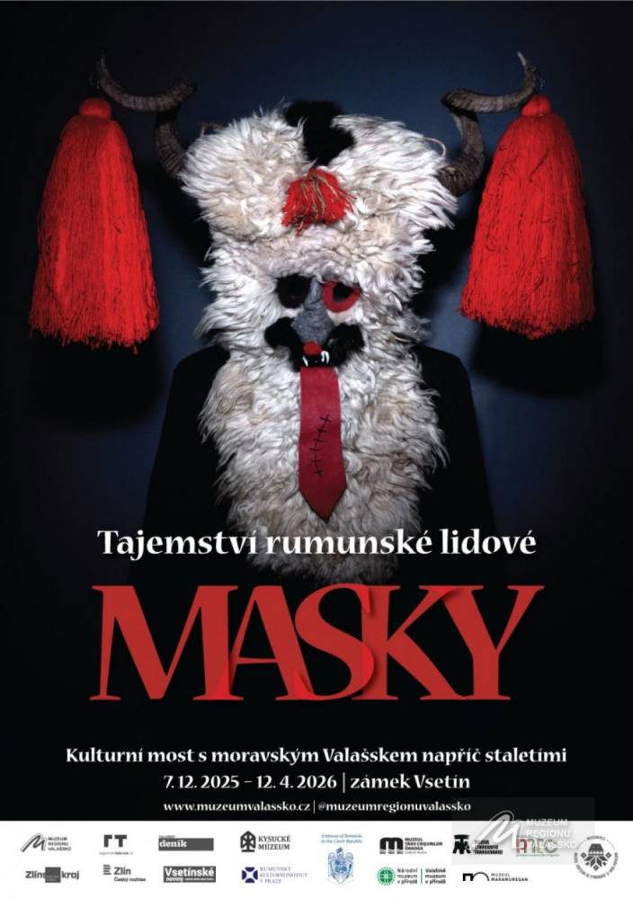 O expoziție dedicată măștilor populare românești va fi deschisă la Muzeul Regional al Valahiei din Moravia, Vsetín, în perioada 7 decembrie 2025 – 12 aprilie 2026. Evenimentul este organizat de Muzeul Regional al Valahiei, în parteneriat cu Institutul Cultural Român de la Praga, Ambasada României în Republica Cehă, Muzeul Etnografic al Transilvaniei din Cluj-Napoca, Muzeul Maramureșului – Sighetu-Marmației, Muzeul Judeţean de Etnografie şi Artă Populară Maramureş din Baia Mare și Muzeul Țării Crișurilor din Oradea. Expoziția va fi vernisată sâmbătă, 6 decembrie 2025, ora 14.00.
